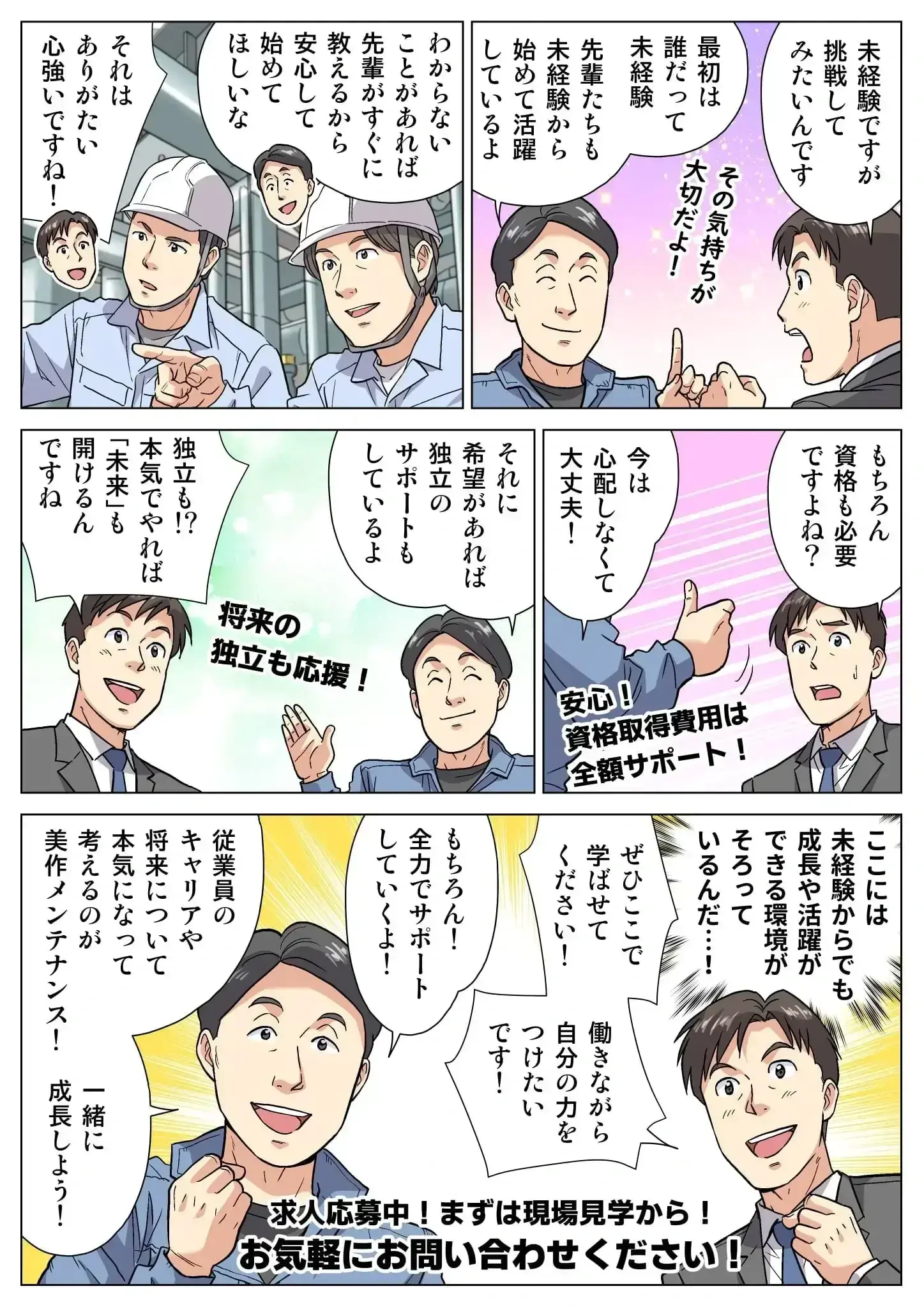 入社前に現場見学や基礎指導を実施。未経験でも安心してスタートできる環境です。